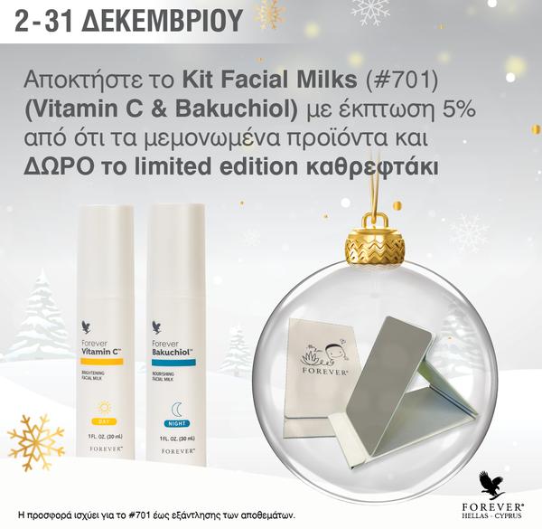 Αποκτήστε στοχευμένη περιποίηση της επιδερμίδας όλο το 24ωρο με ένα δίδυμο προϊόντων καθημερινής χρήσης που περιλαμβάνει το γαλάκτωμα λάμψης προσώπου Forever Vitamin C™ και το θρεπτικό γαλάκτωμα προσώπου Forever Bakuchiol